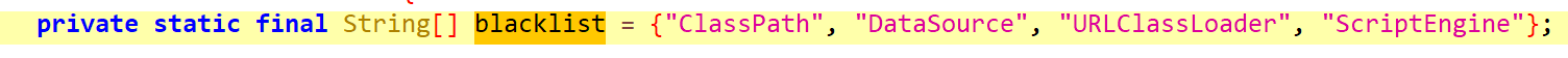 private static final String[] JOB_BLACKLIST = {"java.net.URL", "javax.naming.InitialContext", "org.yaml.snakeyaml", "org.springframework", "org.apache", "rmi", "ldap", "ldaps", "http", "https"};
