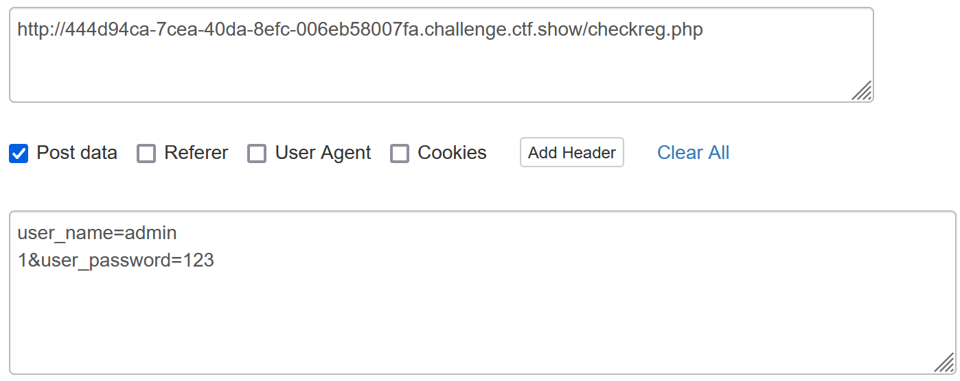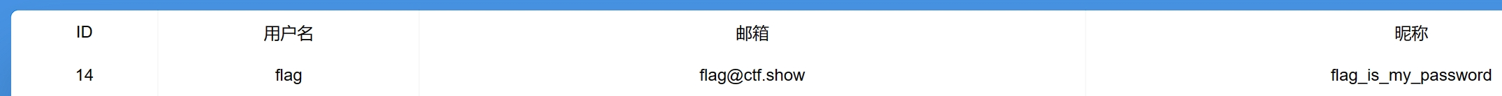 url = 'http://7d646b24-dd1b-4d36-b8a3-7808d462814c.challenge.ctf.show/index.php?id=-1/**/or/**/'